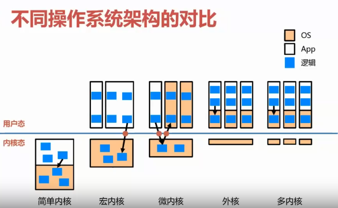 - 更好地应对复杂性:宏内核架构、微内核架构、外核架构、多内核架构等
